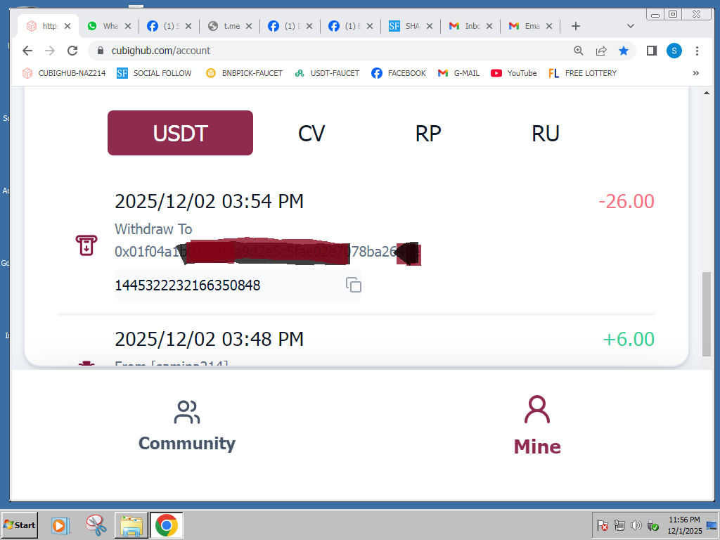 • This is my next withdrawal ($26.00) from CubigHub.com without any investment.