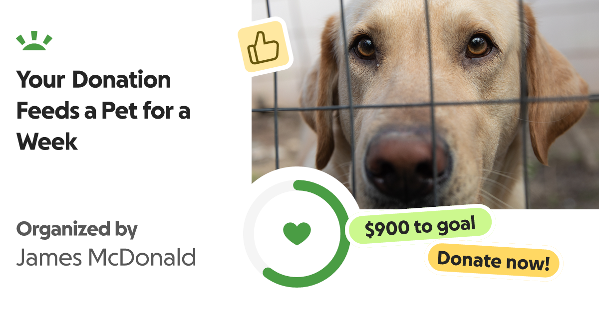 https://gofund.me/fe8d2a0aGOFUND.MEYour Donation Feeds a Pet for a Week, organized by James McDonaldHello, I'm James. I am collecting donations for my local animal shelter. They n… James McDonald needs your support for Your Donation Feeds a Pet for a Week0 Commenti 0 condivisioni 2K Views