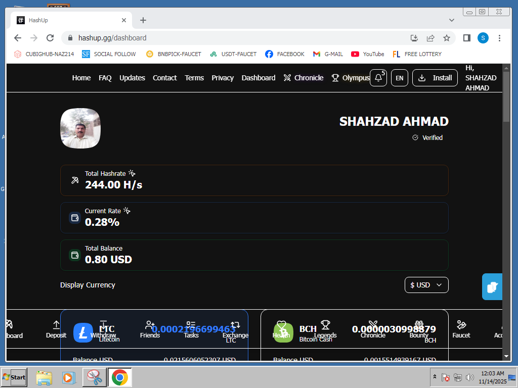 Referral Program: 2% from deposits (4% Premium), 0.5% from Level 2 deposits (2% Premium), plus 75% faucet H/s from Level 1, 25% faucet H/s from Level 2 (streak 7+ required). Grow your network!